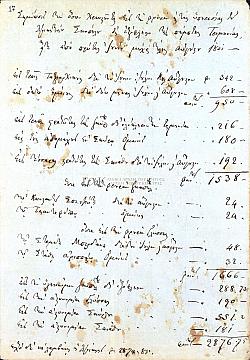 Σημείωσις των χρεωστουμένων προς τη φρουρά και τις υπηρεσίες Διοίκησης Σκοπέλου, Γλώσσας και Σκύρου για τους μήνες Ιουνίου - Αυγούστου 1831.