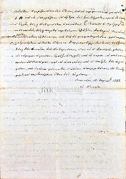 Επιστολή πιθανόν Έλληνα που κατοικεί στο Μόναχο που ενημερώνει (ίσως κάποιον κυβερνητικό παράγοντα) για την εκλογή του δευτερότοκου γιου του βασιλιά της Βαυαρίας Όθωνα ως ηγεμόνα της Ελλάδας, καθώς και για τους όρους που έθεσε ο βασιλιάς της Βαυαρίας Λουδοβίκος για την πραγματοποίηση αυτής της εκλογής. Η επιστολή στέλνεται από το Μόναχο (Νυνομαχία) στις 18.04.1832.
