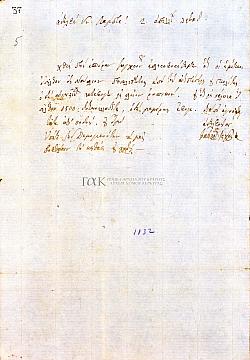 Επιστολή του Βασιλείου Τριχά προς τον Λάμπρον Αλεξάνδρου με σύντομες (τηλεγραφικές) ειδήσεις. Μεταξύ άλλων τον πληροφορεί οτι οι ημέτεροι μετέβησαν στο Ναύπλιο προσκεκλημένοι των Aντιπρέσβεων και των πολιτών, ότι ο Αυγουστίνος (Καποδίστριας) κατέφυγε σε ρωσικό πλοίο και ότι στα Σάλωνα εισήλθαν 1.500 Δυτικοελλαδίτες. Λειβαδιά, 02.04.(1832)