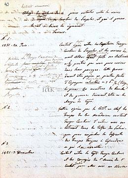 Κατάλογος, στον οποίο καταγράφονται 16 έγγραφα (συμφωνητικά, διαταγές, αποδεικτικά) που αφορούν τις υπηρεσίες που προσέφερε ο Γεώργιος Καμπούρης (Καπετάνιος) με το πυρπολικό του στον Aγώνα από τον Ιούνιο του 1821 μέχρι τον Ιούνιο του 1832 (πιθανότατα για αίτηση αποζημίωσης).