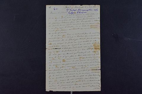 Επιστολή του Αλέξανδρου Μαυροκορδάτου προς τον Colonel Stanhope με την οποία, αφού τον ενημερώσει σχετικά με την αποστολή των πολεμοφοδίων μέσω του Cap. Irelawnay στην Αθήνα, εκφράζει κρίσεις για το στρατιωτικό δεσποτισμό και τη Μοναρχία. Η επιστολή γράφτηκε στο Μεσολόγγι και έχει ημερομηνία 06.06.1824.
