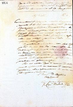 Επιστολή-διαβιβαστικό του Vlassopulo, Amministratore di Corfu προς τον Presidente del Tribunal di Commercio, με την οποία τον πληροφορεί ότι το πιστοποιητικό ασθενείας του G. Gironci εστάλη στο Τμήμα Δικαιοσύνης της Γερουσίας και ότι το τμήμα αυτό αποφάσισε ότι αρμόδιο να γνωμοδοτήσει για το παραπάνω πιστοποιητικό είναι το Tribunal di Commercio. Επιπλέον, τον πληροφορεί ότι του διαβιβάζει την σχετική αυτή απόφαση της Γερουσίας. Αντίγραφο επικυρωμένο. Υπογράφεται από τον Cancellier Machiedo. Κέρκυρα, 19.03.1817.
