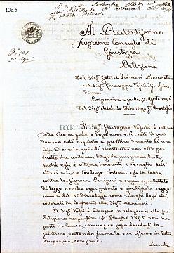 Petizione προς το Ανώτατο Συμβούλιο της Δικαιοσύνης του Sr Sottiri Trimeri, procuratore del Sr Giuseppe Vassila qm Spiridione απαντητική (responsiva) σ’ εκείνην της 17.08.1846 του Sr. Michele Dimulizza qm Anastasio .