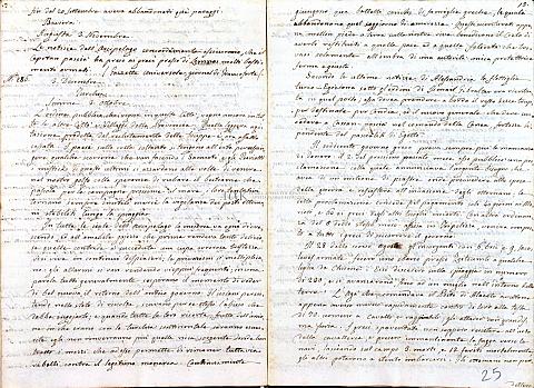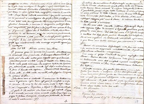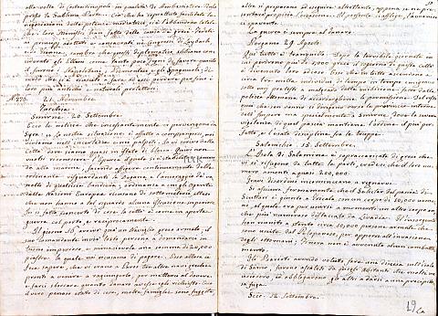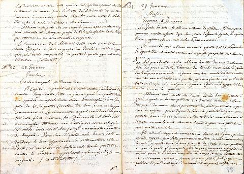 Αποσπάσματα από την εφημερίδα Giornal delle due Sicilie (αρ. 225 - 309 και 1 -25 από 22.09.1823 - 30.01.1824), όπου αναδημοσιεύονται άρθρα από διάφορες εφημερίδες (Gazzetta Universale di Augusta, Giornal di Francoforte, Osservator Austriaco, Spectateur Oriental). Το περιεχόμενο αφορά τα πολεμικά γεγονότα της ελληνικής επανάστασης από τον Ιούλιο μέχρι τον Δεκέμβριο του έτους 1823.