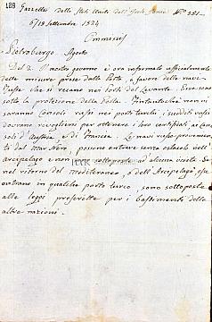 Απόσπασμα από την εφημερίδα Gazzetta delli Stati Uniti dell’ Isole Ionie (αρ. 351, 6/18.09.1824), στο οποίο αναδημοσιεύεται η είδηση για τα μέτρα προστασίας της Οθωμανικής Πύλης υπέρ των ρωσσικών πλοίων που φθάνουν στα λιμάνια της Ανατολής.
