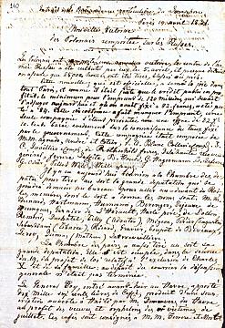 Απόσπασμα από την εφημερίδα Correspondance particuliere du Semaphore (19.04.1831), στο οποίο σημειώνονται διάφορες ευρωπαϊκές ειδήσεις (π.χ. η νίκη των Πολωνών εναντίον των Ρώσων στις 5 Απριλίου 1831, οι συνέπειες που είχε το γεγονός αυτό στην οικονομική ζωή του Παρισιού κ.λ.π.)