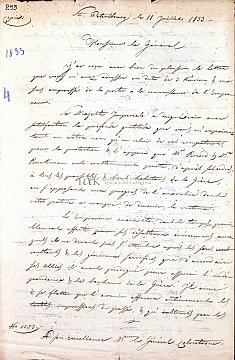 Επιστολή του Nesselrode προς τον Κολοκοτρώνη με την οποία τον διαβεβαιώνει για τη συμπάθεια τη δική του και του Αυτοκράτορα προς το πρόσωπό του και εκφράζει τη βεβαιότητα ότι ο βασιλεύς Όθων θα φροντίσει για την εξασφάλιση της ευημερίας της Ελλάδας.