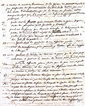 Ερωτήματα (questions) σχετικά με την πολιτική, οικονομική, ναυτική και διοικητική κατάσταση της Ελλάδας μετά την επανάσταση καθώς και ερωτήματα σχετικά με τη δράση ορισμένων προσώπων (Κωλέττη, Μαυροκορδάτου, Κουντουριώτη).
