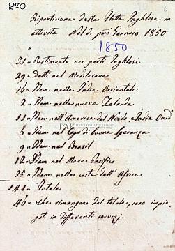 -Κατανομή των Αγγλικών πλοίων που βρίσκονται σε δραστηριότητα (riparticione della Flotta inglese in attivita) σε διάφορα λιμάνια της Υδρογείου την 1η Ιανουαρίου 1850.