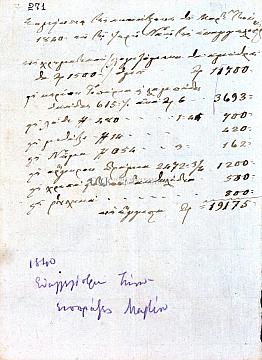Καταγραφή των εισπράξεων (από λάδι, κεριά, μετάξια, αργυρά και χρυσά τάματα, ρούχα) του μηνός Μαρτίου 1840 του ιερού ναού της Ευαγγελίστριας Τήνου.