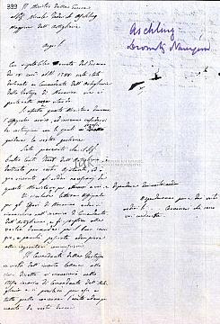 Σχέδιο επιστολής του Μινίστρου του Πολέμου προς τον Niccola Federich Aschling, maggiore dell’ Artiglieria, με την οποία του γνωστοποιεί την απόφαση διορισμού του (αριθμ. 1788/ 18.06.1822) στη θέση του Comandante dell’ Artiglieria του Ναυαρίνου, του γνωστοποιεί επίσης το διορισμό του Pietro Conti στη θέση του Ajutante del Comandante dell’ Artiglieria καθώς και τις επαφές που ενδείκνυται να έχει με τους Εφόρους του Ναυαρίνου και τον Comandante του Φρουρίου.