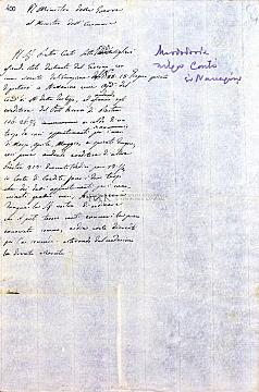 Σχέδιο επιστολής του Μινίστρου του Πολέμου προς τον Μινίστρο της Οικονομίας σχετική με τη μισθοδοσία του Pietro Conti, Ajutante dell’ Artiglieria στο φρούριο του Ναυαρίνου.
