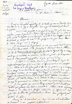 - Σχέδιο επιστολής (αριθμ. 597) του Μινίστρου του Πολέμου (Ministre de la guerre) προς τον Commandante Voutier σχετικά με τον ανεφοδιασμό του σε βόμβες και μπαρούτη. Επιπλέον, εξαίρει τη φιλοτιμία του και τις στρατιωτικές του γνώσεις και τον ενημερώνει για την προσεχή άφιξη φιλελλήνων αξιωματούχων στην Αθήνα.