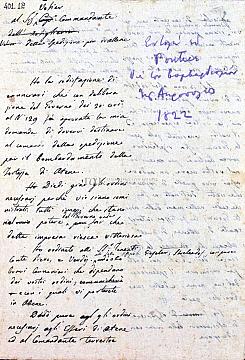 Σχέδιο επιστολής (μάλλον του Μινίστρου του Πολέμου) προς τον Voutier, Commandante della Spedizione di Atene, σχετικής με την έγκριση της πρότασης που απηύθυνε στην Κυβέρνηση για να παρασχεθεί σ’ αυτόν η αρχηγία της επιχείρησης του βομβαρδισμού της Ακρόπολης. Επιπλέον, τον ενημερώνει ότι έχει δώσει τις σχετικές εντολές στους κανονιοβολιστές και στους Εφόρους των Αθηνών και τέλος τον επαινεί για το ζήλο που επιδεικνύει σ’ αυτή τη σπουδαία και ιστορική επιχείρηση.