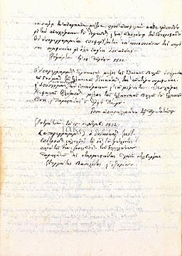 Σημ. Tο πρωτότυπο (Τζουτγάτον [Στουτγκάρδη;], 15.08.1822) υπογράφεται από τον Θεοχάρη Κεφαλά Ολύμπιο, μέλος της Ελληνικής Βουλής του Ελληνικού Εθνους και Παραστάτη του Αρείου Πάγου. Το αντίγραφο υπογράφεται από το διδάσκαλο «ζηότη», επίτροπο εκλεχθέντα τη ιε’ του τρέχοντος παρά της Γεν. Συνελεύσεως των Φιλελλήνων παραστατών της νταρμεστάδης [Ντάρμστατ], Χαϊν ντελβέργας [Χαϊδελβέργης], Στουργάτης [Στουτγκάρδης], Βασιλίδος και Τζουρίκου [Ζυρίχης].