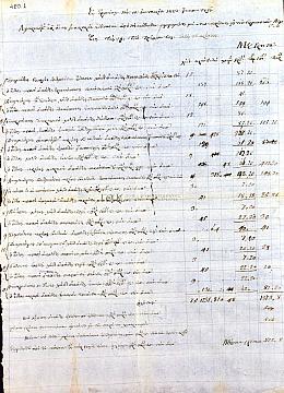Ενδ.: λογαριασμός αφ’ όσας ζωοθροφάς εδόθησαν από τους κάτωθεν σημειωμένους με δεσκερέδαις εις την Γερμανικήν λεγεώνα εως τας 10 του τρέχοντος εκτός του κρέατος. Ονομαστικός κατάλογος προσώπων που εχορήγησαν λάδι, κρασί και κρέας στη γερμανική λεγεώνα μέχρι την 10η Ιαναουαρίου 1823. Φέρει τις εξης στήλες: [ονομαστικός κατάλογος], λάδι, κρασί, κρέας (Βοδινόν/χοιρινόν), Μετρητά (γρόσια, παράδες). Αντίγραφο μη επικυρωμένο.