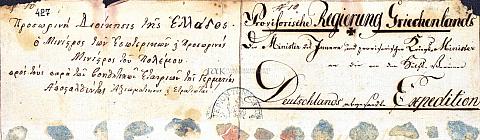 Φύλλο περιτυλίγματος δέσμης εγγράφων που φέρει την ένδειξη: Προσωρινή Διοίκησις της Ελλάδος. Ο Μινίστρος των Εσωτερικών και Προσωρινός του Πολέμου προς τους παρά των βοηθητικών Εταιριών της Γερμανίας Αποσταλθέντας Αξιωματικούς και Στρατιώτας.