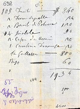 Σημείωμα καταγραφής τιμών όπλων, πολεμοφοδίων και τροφίμων.