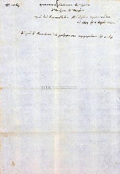 Σχέδιο επιστολής (αρ. 2564) του Μινίστρου των Εσωτερικών και Προσωρινού του Πολέμου προς τον Ανδρέα Ζαϊμη, με την οποία τού δίνεται εντολή να φροντίσει να βρει τα δυο σεντούκια με τα ρούχα του Προέδρου Α. Μαυροκορδάτου, τα οποία απώλεσε ο Μόσχος Αθανασιάδης διερχόμενος από τη Βοστίτζα.