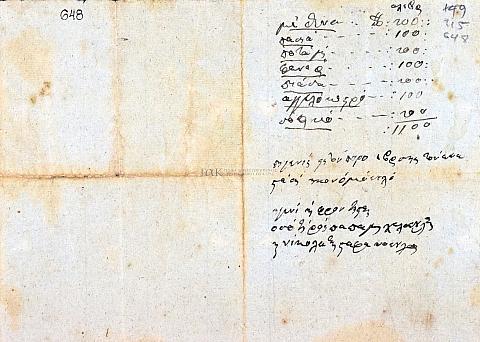 Γλώσσα: ελληνικήΧαρακτηρισμός: Έγγραφο 648 (Υποφακ. 17) 1 μφ., χειρόγραφο (Ε.)Λέξεις-κλειδιά: Αλεύρι, Προϊόντα