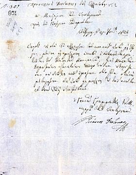 Επιστολή (αρ. 307) του Μινιστερίου των Εσωτερικών προς το Γεώργιο Παπαθαμνώτη(:), με την οποία εντέλλεται να παραχωρεί κάθε ημέρα δυο ζώα για τη μεταφορά σιτηρεσίων των στρατιωτών από το Άργος στους Μύλους. Υπογράφει ο Γεν. Γραμματέας του Μινιστερίου των Εσωτερικών Ι. Θεοτόκης. Άργος, 25.06.1822