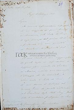 Σχέδιο απάντησης του Κυβερνήτη Ι. Καποδίστρια προς τον Ύπατο Αρμοστή Ιονίων Φρ. Άνταμ σχετικά με αίτημα για τους Manueld' Alexis και MichelSapountzakis (2).