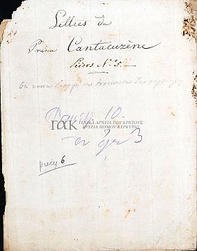 Επιστολές του πρίγκηπα Α. Καντακουζηνού προς τον Κυβερνήτη Ι. Καποδίστρια. Οι δύο από αυτές συνοδεύονται και από ημερολόγια πληροφοριών (δίφυλλο και μονόφυλλο αντίστοιχα). Μνεία στη διαμάχη μεταξύ Συριανών (ντόπιων) και κατοίκων Ερμούπολης. Μνεία σε χιώτες πρόσφυγες.
