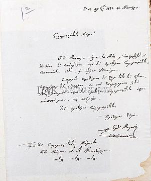 Περιλαμβάνει 4 επιστολές του Εμ. Μεστανέ (;) προς τον Αυγουστίνο Καποδίστρια περιόδου 1831-1832: