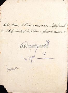 Περιέχει 4 έγγραφα που αφορούν την δολοφονία του Κυβερνήτη Ι. Καποδίστρια: