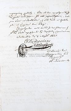 Παροχή οδηγιών προς τον Πληρεξούσιο Τοποτηρητή Αυγ. Καποδίστρια. Τον διορίζει επικεφαλής ("Πληρεξούσιο") όλων των ελληνικών δυνάμεων, στρατιωτικών και πολιτικών, στις επαρχίες της ανατολικής Στερεάς με αποστολή να διευθύνει τον αγώνα εναντίον των Τούρκων, με στόχο να τους διώξει από την περιοχή. Του παρέχει πλήρεις εξουσίες και του δίνει αναλυτικές οδηγίες. (1)