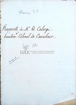 Περιέχει αναφορές και επιστολές του αντισυνταγματάρχη Δ. Καλλέργη, Υπασπιστή του Ι. Καποδίστρια και Διοικητή Ιππικού, προς τον Αυγουστίνο Καποδίστρια σχετικά με στρατιωτικές υποθέσεις της αρμοδιότητάς του, την δημόσια τάξη/σφάλεια, την αντιμετώπιση των αντιπολιτευόμενων ("ανταρτών"), τη δράση του Ιππικού Σώματος, την εκκαθάριση και αντιμετώπιση της αντιπολίτευσης κ.λπ. Αναλυτικότερα: