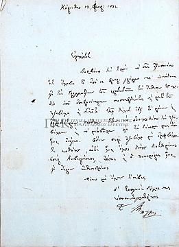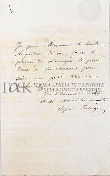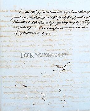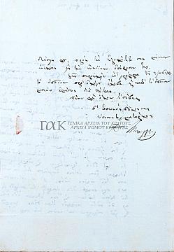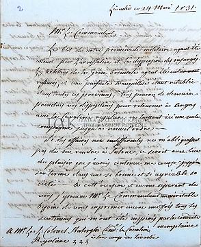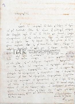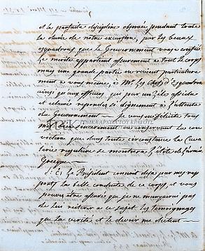 Εκφράζει ευχαριστίες για τα καλά λόγια και τους επαίνους του Αυγ. Καποδίστρια προς το πρόσωπό του και ευγνωμοσύνη για το χρηματικό ποσό που προσφέρει στο Ιππικό Σώμα το οποίο διοικεί (3).