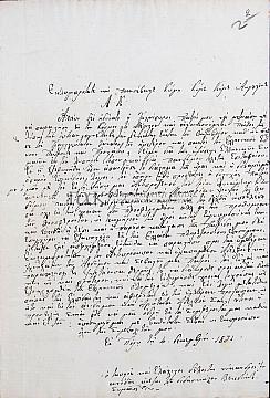 Περιέχει επιστολές του Νίκανδρου Ιωαννίδη, Συμαίου ιεροδιάκονου, ανιψιού του διδάσκαλου Βενέδικτου, προς τον Αυγουστίνο Καποδίστρια: