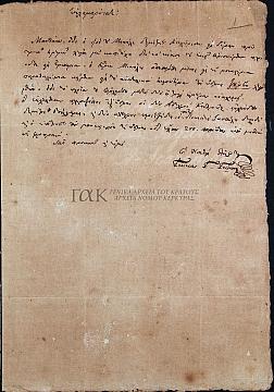 Χαρακτηρισμός: 6 έγγραφα, 5 πρωτότυπα και ένα Σχέδιο επιστολής.