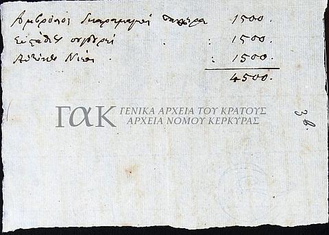 Συνημμένο στο παραπάνω σχέδιο επιστολής Αυγουστίνου προς Σκαραμαγκά και σημείωμα με τρία ονόματα με χρηματικά ποσά σε τάληρα δίπλα από το καθένα (Αμβρόσιος Σκαραμαγκάς, Ευστάθιος Συγουρής, Αντώνης Νίκας) (3α, 3β).