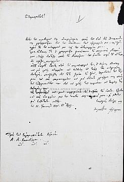 Χαρακτηρισμός: 1 έγγραφο, πρωτότυπη επιστολή.