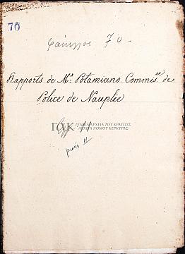 Λέξεις-κλειδιά: Ποταμιάνος, Μιαούλης Ανδρέας, Σπανιολάκης Δημήτριος, Μαυροκορδάτος Αλέξανδρος, Βαλτινός Γ., Τρικούπης Σπυρίδων, Λόντος Αναστάσιος, Γραμματικόπουλος Γεώργιος, Πονηρόπουλος Νικόλαος, Κωλέττης Ιωάννης, Ζωγράφος Κωνσταντίνος, Κουντουριώτης Γεώργιος, Μπουντούρης Σταμάτης, Χατζηπέτρος Γιαννάκης, Σούτζος Μιχαήλ, Σκορδούλης Χαρ., Μαυρομιχάλης Κωνσταντίνος, Δεληγιάννης Αναγνώστης, Σούτσος Ιωάννης, Αντωνιάδης Εμμ., Χρηστακόπουλος Β., Παλαμίδης Ρήγας, Μαγγίνας Τάτσης, Λοιδωρίκης Αναστάσιος Αναγν., Σισίνης Γεώργιος, Κλωνάρης Χριστόδουλος, Πραΐδης Γ., Μαυρομιχάλης Γεώργιος Π., Βλάσσης Χρήστος, Βλάσσης Ανδρέας, Περούκας Απόστολος, Μακρυγιάννης, Δούκας Κ., Χατζηπέτρου Ιωάννης, Οικονόμου Νικόλαος, Σπηλιωτόπουλος Σπυρίδων, Υψηλάντης Δημήτριος, Ντάρας Πάνος, αντιπολίτευση Ιωάννη Καποδίστρια, Αντιπολίτευση, Αστυνομία, τάξη δημόσια, Ασφάλεια, παρακολουθήσεις, Ναύπλιο, Ύδρα