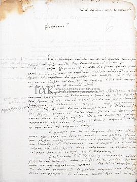 Αναφορά σχετικά με την αντιμετώπιση της ληστείας στην Πελοπόννησο, τη συγκρότηση σώματος δημόσιας τάξης-φρουράς και τις κινήσεις του Γ. Μαυρομιχάλη στην Μάνη (6).