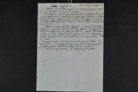 Περιέχει αλληλογραφία του Ιωάννη Καποδίστρια με τον N. Milliani/Ν. Μιλιάνη. Μεταξύ άλλων, αναφέρει ανυπομονησία του ιδίου και συμπατριωτών του σχετικά με έναρξη κινήματος, επισυνάπτει προς τον Καποδίστρια εφημερίδες, αναφέρει πολιτικές ειδήσεις από την Ελλάδα και εκτιμήσεις σχετικά με το μέγεθος του τουρκικού στόλου (1), μεταφέρει νέα από την Ελλάδα και τις πολεμικές επιχειρήσεις και καλεί τον Καποδίστρια να λάβει ενεργά μέρος στα πολιτικά πράγματα της Ελλάδας (3), ζητάει εναγωνίως να γίνει κάποια "κίνηση" και να τον έχει υπόψιν για να τον υπηρετήσει ενώ επικαλείται και σχετικές παροτρύνσεις άλλων "φίλων" αορίστως (5), διατύπωση σκέψεων-απόψεων του Ιωάννη Καποδίστρια σχετικά με τον τρόπο που μπορεί να σωθεί η Ελλάδα, τον ρόλο των ξένων κ.λπ. (7α), μεταφέρει νέα από την πολιορκία του Μεσολογγίου (7), ειδήσεις σχετικά με τον θάνατο του Ιμπραήμ και την επανάσταση στην Κρήτη (8),