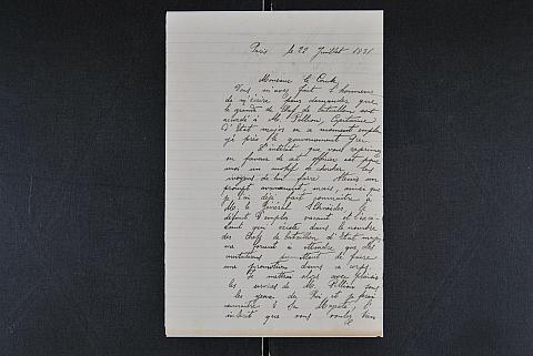 Περιέχει εισερχόμενες επιστολές του Υπουργείου Πολέμου της Γαλλίας και του στρατηγού Sebastiani προς τον Ιωάννη Καποδίστρια σχετικά με διάφορες στρατιωτικές υποθέσεις, γάλλους αξιωματικούς που υπηρετούν στην Ελλάδα κ.λπ. Μνεία στον λοχαγό M. Garnot [2], Leonce Laborie [5], Fabreguette [6], Anatole Berald de Sedaige (;;) [7], M. Pellion [9], Pourchet [10],