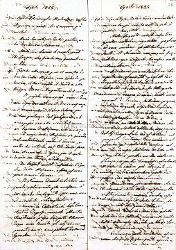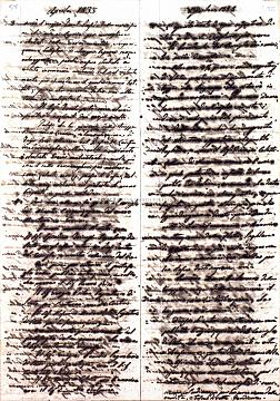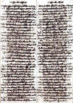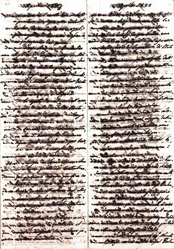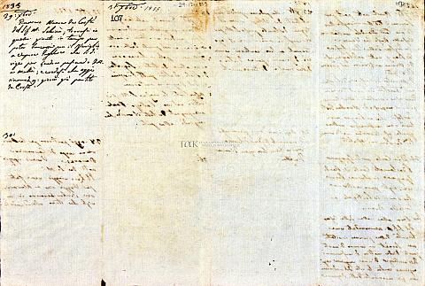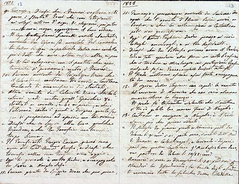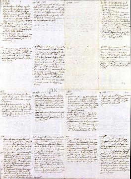 [Σημ: Το ημερολόγιο έχει τη μορφή φύλλων συρραμένων (6 τμήματα αυτής της μορφής) ή διπλωμένων. Ακόμη, έχουν χρησιμοποιηθεί για το σκοπό αυτό και δυο αυτοσχέδιοι φάκελοι αλληλογραφίας από επιστολές που απευθύνονταν στον ίδιο]
