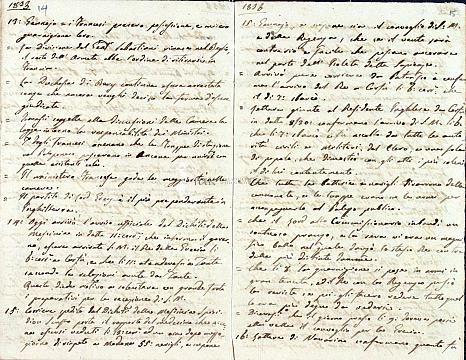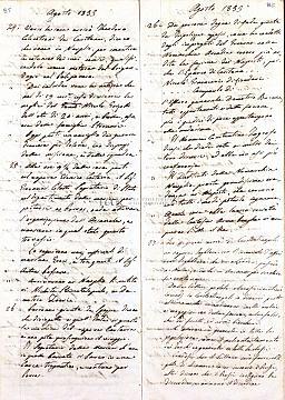 Τμήμα ημερολογίου του Ιωάννου Βαπτιστή Θεοτόκη. Καταγράφονται κυρίως γεγονότα της ελληνικής πολιτικής (της Αυλής κυρίως του Οθωνα) και στρατιωτικής ζωής, χωρίς να παραλείπονται όμως και ειδήσεις ή σχόλια για άλλες ευρωπαϊκές χώρες καθώς και ειδήσεις κοινωνικές της εποχής.