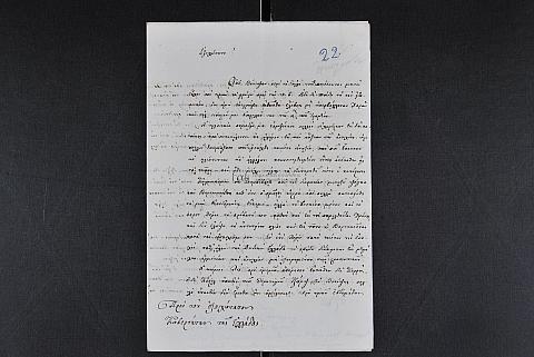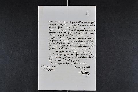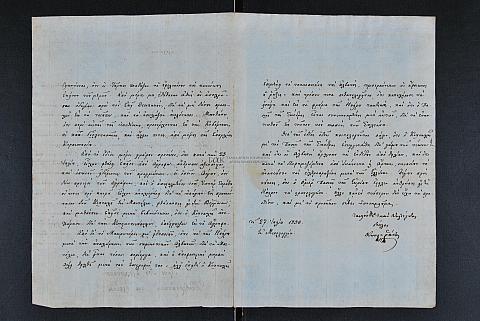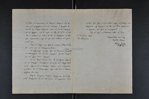 Επισυνάπτονται επιστολή Καπατζηλάρ και Χαγιά προς καρπενησιώτες (1α), Προκήρυξη του Βεζύρη Μεχμέτ Ρασήφ, αναφορά κατοίκων επαρχιών Βονίτσης κ.λπ. και ειδήσεις από ιωάννινα (15α-β), επιστολές Γρίβα, Βαρνακιώτη και σημειώσεις (22α-γ), επιστολή Μακροκρασόπουλου και αναφορά κατοίκων Δυτικής Ελλάδας εκτός συνόρων Ελληνικού κράτους (25α-β), επιστολή Κων/νου Αποστόλου (31α), Ψήφισμα Προσωρινής Διοικήσεως της Ελλάδος (43α), επιστολή Θ. Γρίβα (49α)