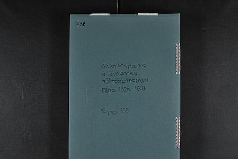 Περιέχει έγγραφα αλληλογραφίας μεταξύ του συνταγματάρχη/στρατηγού Πίζα/Πίσα/Pisa: αναφορές του Πίζα, συνημμένος κατάλογος ορφανών Ναυπλίου (3), Κατάσταση ανδρών και υλικών στρατού Ναυπλίου (7), Λογαριασμοί καλυβών, εξόδων καθαρισμού Ναυπλίου και Κατάσταση ορφανών (10), Κατάσταση ανδρών και υλικών στρατού (13), Αναφορά Φρουράρχου Μεσολογγίου και Αναφορά του Αστυνόμου Ανατολικού Κων/νου Αποστόλου (23), επιστολές Βελίκου Γιάτζη (25), Κατάλογος λιποτακτών (26), Αναφορές Βελίκου Γιάτζη (27), Προκήρυξη Πίζα προς κατοίκους χωριού Βάρνακα (36), επιστολή Πίζα προς τον Αρχηγό των κατά την Αλβανίαν Οθωμανικών Δυνάμεων, Αναφορά Κοντογιάννη προς Πίζα, Αναφορά κατοίκων Καρυοράχης προς Πίζα (37), επιστολή Πίζα προς τον Αρχηγό των κατά την Αλβανίαν Οθωμανικών Δυνάμεων (38), έγγραφο Γραμματέα Στρατιωτικών προς τον Πίζα (67), μετάφραση εγγράφου Ρεσίτ Μεχμέτ Βεζύρη προς Πίζα (72, 75), Κατάσταση Νεοσυλλέκτων Μοίρας Μακρυνόρους και Κατάσταση Νεοσυλλ΄'εκτων Μοίρας Ναυπάκτου (103), διάφορες αναφορές αξιωματικών προς τον Κυβερνήτη (77-99), Έγγραφο της Ελληνικής Πολιτείας με υπογραφή Αυγουστίνου Καποδίστρια (104), αντίγραφο Οδηγιών προς τον Στρατηγό Πίζα (105), Κατάλογος φαρμάκων του Νοσοκομείου Ναυπλίου (106), σχέδια απαντήσεων του Κυβερνήτη προς τον Πίζα (107-135), επιστολή προς τον Αυγουστίνο Καποδίστρια