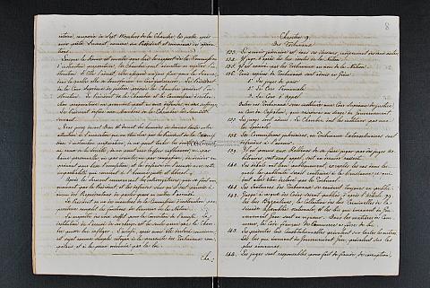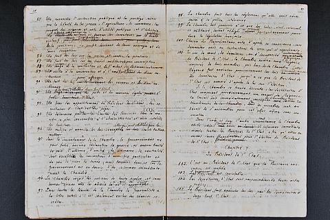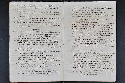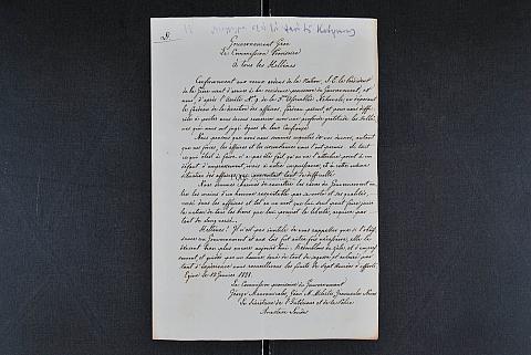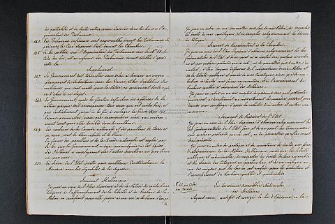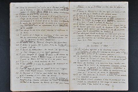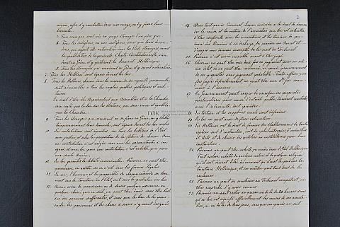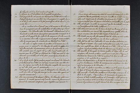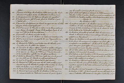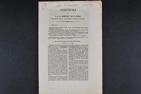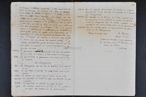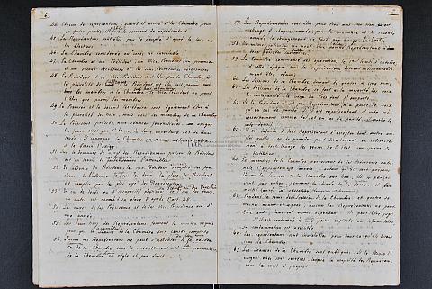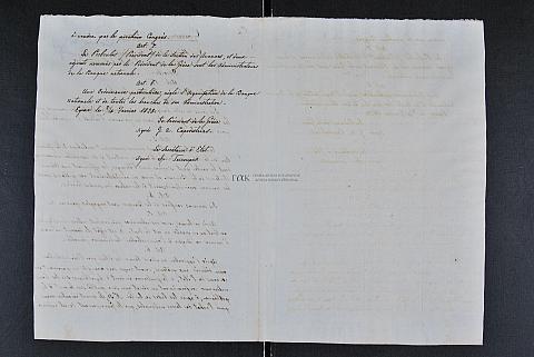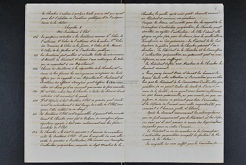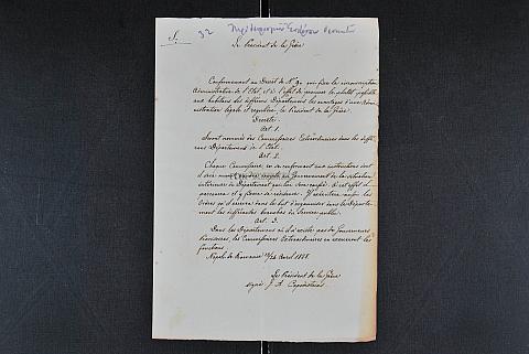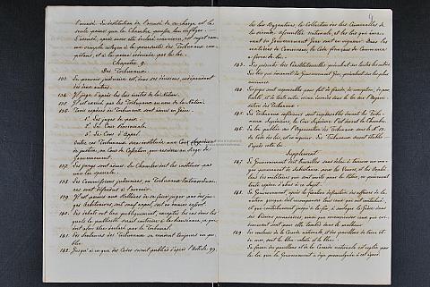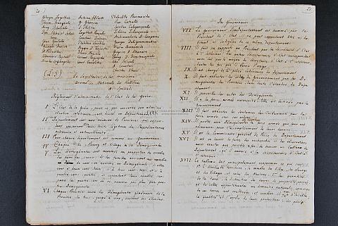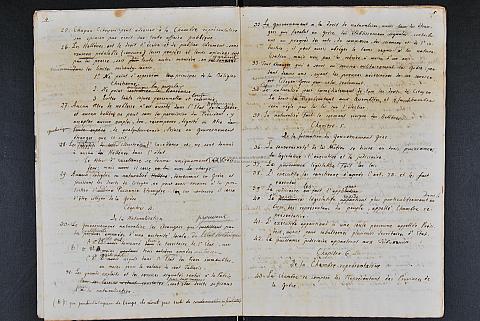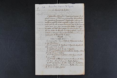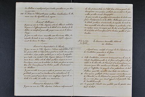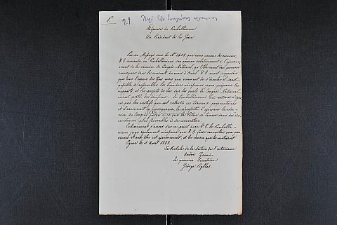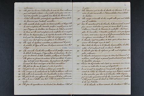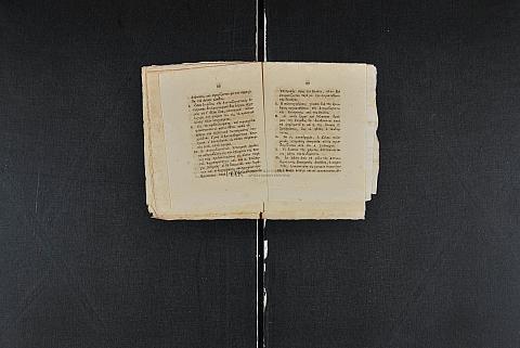 Σύνταγμα του 1827 (1, 2, 16), μετάφραση επιστολής προς την Κοινοβουλευτική Επιτροπή (3), Δικαιώμενα που εγγυάται το Σύνταγμα προς τους Έλληνες (4), έντυπο Ψήφισμα Δ' Εθνοσυνέλευσης (5), έντυπος Λόγος του Κυβερνήτη Ιωάννη Καποδίστρια (6), έντυπη Εγκύκλιος περί σύστασης Εθνικής Τράπεζας (7), έντυπο Διάγγελμα του Κυβερνήτη (8), Εγκύκλιοι Κυβερνήτη (9-15, 26), Ψήφισμα Εθνοσυνέλευσης Τροιζήνας-διορισμός Κυβερνήτη (17), Διάγγελμα προς τον λαό (18), έγγραφο Κυβερνήτη προς τη Βουλή με Διάγγελμα 17/1/1828 (19), έγγραφο Κυβερνήτη προς την Προσωρινή Κυβέρνηση (20), Εγκύκλιος Εθνοσυνέλευσης 18/7/1828 (21), Περί όρκου-Ψήφισμα (22), Περί εσόδων (23), Σύσταση Εθνικής Τράπεζας (24), Λογοδοσία Κυβερνήτη (25), Πρόσκληση προς το Πανελλήνιο για συνεισφορά (27), Διάγγελμα Κυβερνήτη 20/7/1828 (28), πρόσκληση περί Εθνικής Συνέλευσης (29), Διοικητική Διαίρεση της Ελλάδας (30), Οργανισμός του Πανελληνίου (31), περί Διορισμού Επιτρόπων Διοικητών (32), Σύσταση Πανελληνίου (33), έντυπος Κώδικας Ψηφισμάτων (34), επιστολή προς τον Πρέσβη της Μεγάλης Βρετανίας στην Κωνσταντινούπολη Στράτφορντ Κάνινγκ 10/9/1828 (35), Οργανισμός Γερουσίας 8/9/1829 (36), Ορκωμοσία Υπουργών 23/10/1829 (37), Διακριτικά σημεία δημοσίων λειτουργών (38, 39), περί της θέσης των Γερουσιαστών 16/10/1829 (40), Εξέλεγξις εθνικών γαιών (41), Ψήφισμα Γερουσίας περί αταξιών και επαναστατικών κινήσεων Πόρου (42)