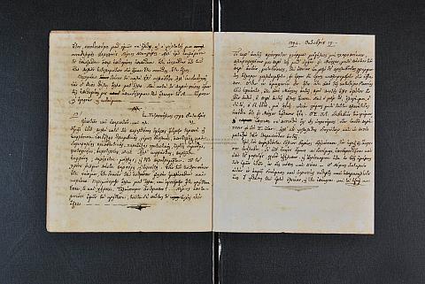 Τετράδιο 19 φύλλων, με ιδιόγραφα αντίγραφα επιστολών του Ευγένιου Βούλγαρη, κατά την εξάσκηση του Ιωάννη Καποδίστρια στην ελληνική γραφή.