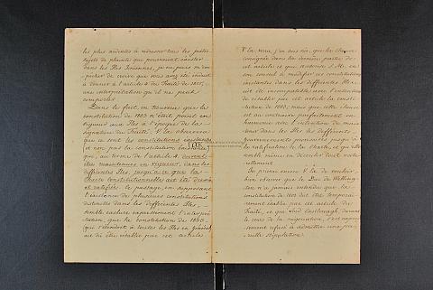 Περιέχει τετράδιο 6 φύλλων με χειρόγραφη έκθεση στα ιταλικά με τίτλο "Παρατηρήσεις περί της εσωτερικής πολιτικής καταστάσεως των Ιονίων Νήσων", χωρίς χρονολογία (1) και αντίγραφο επιστολής στα γαλλικά του λόρδου Bathurst, Υπουργού Πολέμου και Αποικιών της Αγγλίας, προς τον Ιωάννη Καποδίστρια με ημερομηνία 11/12/1819 (2)
