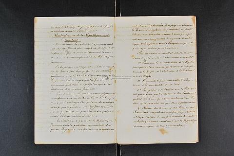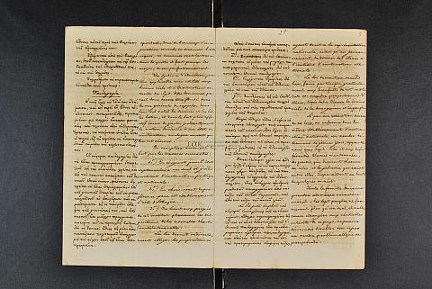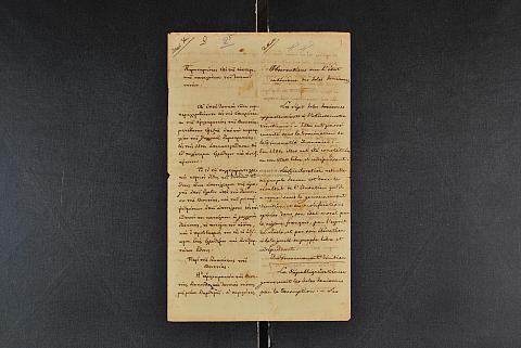 Περιέχει σταχωμένο έγγραφο 19 σελίδων στα ελληνικά και γαλλικά εν ημικλάστω, με τίτλο "Παρατηρήσεις επί της εσωτερικής καταστάσεως των Ιωνικών Νησίων" (2) και έκθεση του Ιωάννη Καποδίστρια προς τον Αυτοκράτορα της Ρωσίας από τη Ζυρίχη σχετικά με την πολιτική κατάσταση στα Ιόνια νησιά, με τίτλο "Raports a la Mageste l' Empereur sur les affaires des Iles Ioniennes", 48 σελίδες, με ημερομηνία 5/10/1814.