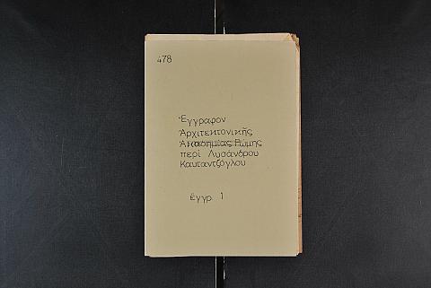 Περιέχει ένα έγγραφο από την Αρχιτεκτονική Ακαδημία Ρώμης σχετικά με τον Λύσανδρο Καυταντζόγλου της 12/12/1829.