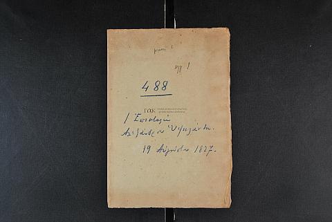 Περιέχει επιστολή του Αλ. Υψηλάντη προς τον Κυβερνήτη Ιωάννη Καποδίστρια της 19/8/1827.